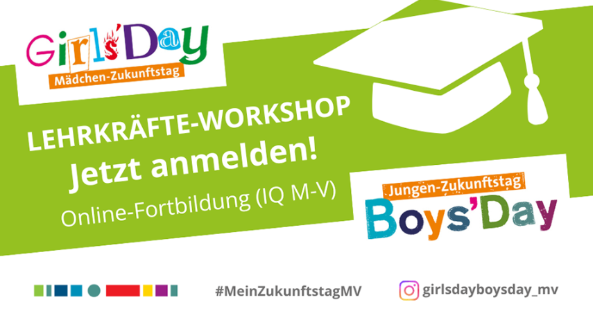 Bereiten Sie Ihre Schülerinnen und Schüler auf die Zukunftstage vor: erweitern Sie gemeinsam den Blick auf Berufe und fördern Sie eine klischeefreie Berufliche Orientierung! In der 1,5-stündigen Online-Lehrkräfte Fortbildung (IQ M-V) lernen Sie den Girls’Day und Boys’Day kennen, erhalten einen Überblick über die organisatorischen Rahmenbedingungen in Mecklenburg-Vorpommern, kompaktes Unterrichtsmaterial zur einfachen Vor- und Nachbereitung, Tipps zur Elternbeteiligung und Ideen für Schüler:innen, die in der Schule bleiben.