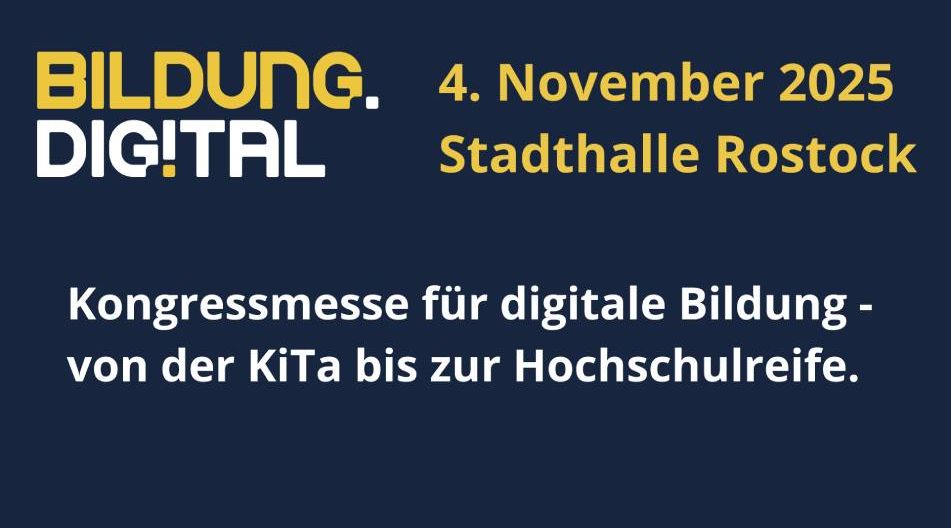 Am 4. November 2025 findet in der Stadthalle Rostock die BILDUNG.DIG!TAL statt – die Kongressmesse für digitale Bildung von der Kita bis zur Hochschulreife. Lehrkräfte, Schulleitungen und Schulträger erwarten praxisnahe Vorträge und Workshops zu Themen wie Künstliche Intelligenz im Schulalltag, digitale Schulentwicklung, Unterrichtsplanung und individuelle Förderung.