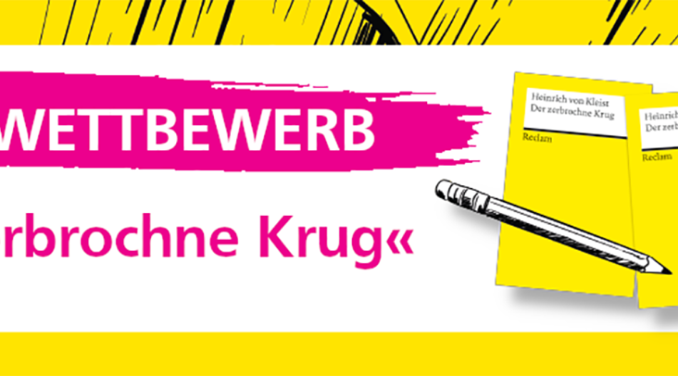 Es ist so weit: Reclams Coverwettbewerb geht in die nächste Runde. Schülerinnen und Schüler haben also erneut die Chance, einen Klassiker neu zu gestalten! Diesmal ist es Heinrich von Kleists »Der zerbrochne Krug«. Der Kreativität sind keine Grenzen gesetzt: Ob gemalt, gezeichnet, geschnitten, fotografiert oder digital von selbst erstellt – der Reclam-Verlag ist gespannt, womit die Teilnehmerinnen und Teilnehmer diesmal überraschen können.