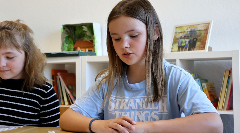 So auch an der Grundschule Mestlin, in der die Schülerinnen und Schüler von Lehrer Jörg Schermer nach dem Zuhören im Morgenkreis selbst aktiv werden. In Zweier-Gruppen verteilt sich die sogenannte JÜ-Klasse (für jahrgangsübergreifend) auf dem Flur in gemütlichen Lese-Ecken, in der eigenen Bibliothek und im Klassenraum. Die Paare lesen gemeinsam in den selbst gewählten Büchern laut vor. Laut-Lese-Tandem heißt diese Methode des Lesebandes. Am liebsten nutzen die Kinder aber den „Ich-Du-Wir-Würfel“, mit dem sie in größeren Gruppen würfeln. Je nachdem, was der Würfel anzeigt, wird gelesen. Bei „Wir“ zum Beispiel gemeinsam, bei „Ich“ nur das Kind, das gewürfelt hat. Dabei geht es reihum, jeder darf würfeln. „Das macht uns am meisten Spaß, weil wir da zusammenarbeiten können“, sagt Klara.